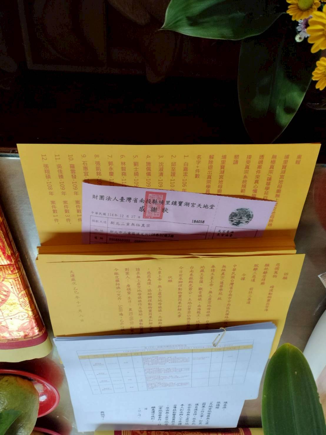 感恩無上虛空地母娘娘、虎爺公、土地公以及眾仙佛菩薩的恩澤,協助動物靈因果和解事宜。